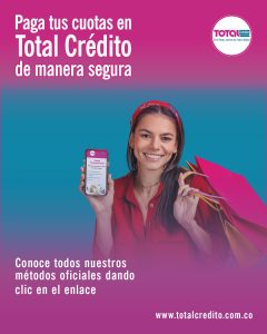 Siempre paga tus cuotas desde el canal transaccional oficial de Total Crédito o desde plataformas reconocidas como los bancos aliados.